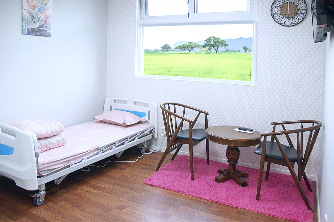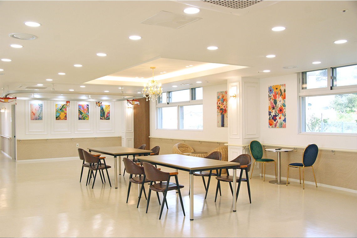 안락함이 깃든 넓은 공간, 자유로운 일상을 위한 세심한 설계. 어르신의 자유로운 움직임을 보장하는 넓은 개인실과 공용 생활공간은 심리적 안정감을 높이며, 개방감이 주는 여유 속에서 긍정적인 신체 활동과 정서적 활력을 자연스럽게 이끌어냅니다. 모든 공간은 어르신의 편안한 생활과 만족스러운 하루를 위해 세심하게 설계되었습니다.