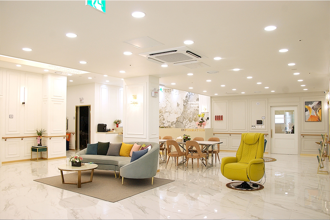 안락함이 깃든 넓은 공간, 자유로운 일상을 위한 세심한 설계. 어르신의 자유로운 움직임을 보장하는 넓은 개인실과 공용 생활공간은 심리적 안정감을 높이며, 개방감이 주는 여유 속에서 긍정적인 신체 활동과 정서적 활력을 자연스럽게 이끌어냅니다. 모든 공간은 어르신의 편안한 생활과 만족스러운 하루를 위해 세심하게 설계되었습니다.